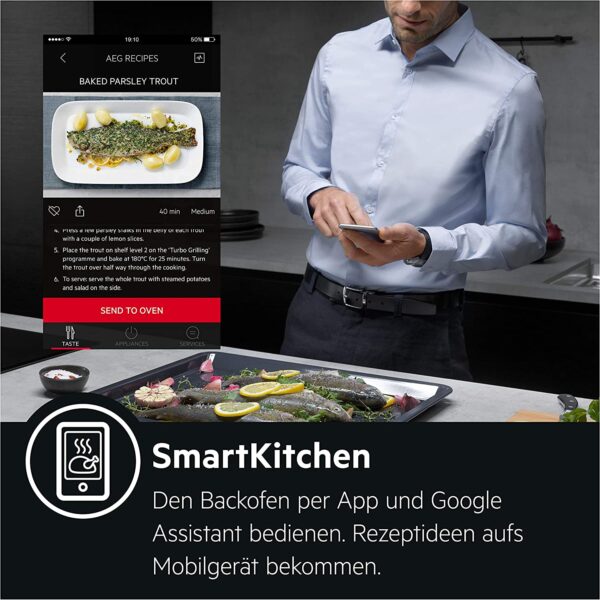 Der AEG BP7200B ist ein vielseitiger Einbaubackofen, der modernes Design mit professioneller Funktionalität verbindet. Er zeichnet sich durch das Pyroluxe Plus Selbstreinigungssystem aus, welches den Reinigungsaufwand auf ein Minimum reduziert, indem es Rückstände bei hohen Temperaturen zu feiner Asche verbrennt. Mit seinem großzügigen Garraum und der ThermiC°Air-Technologie sorgt er für eine absolut gleichmäßige Hitzeverteilung, was perfekte Back- und Bratergebnisse auf allen Ebenen ermöglicht. Die Bedienung erfolgt komfortabel über versenkbare Drehwähler und ein digitales Display, das stets über den aktuellen Garprozess informiert.