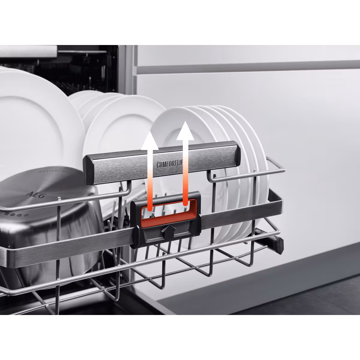 Geschirrspüler mit ComfortLift für komfortables Be- und Entladen ohne Bücken Der AEG FEE83806PM Geschirrspüle…