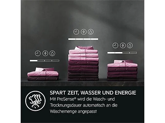 Die Sensoren der ProSense® Mengenautomatik ermitteln automatisch die Wäschemenge für einen maßgeschneiderten Wasch- und Trockenzyklus. Zeit-, Wasser- und Energieverbrauch werden gesenkt. So erhält deine Wäsche exakt die richtige Pflege bei jedem Waschvorgang.