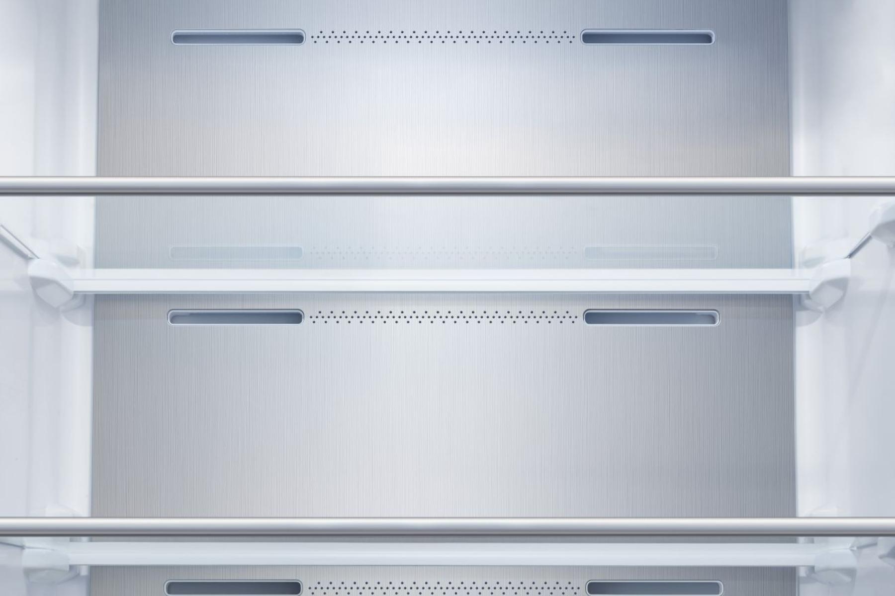 Multi Airflow-System Mehrere Belüftungskanäle verteilen die kühle Luft gleichmäßig im gesamten Innenraum. Dies garantiert eine konstante Temperatur auf allen Ebenen und verhindert "Wärmezonen" im Kühlschrank.