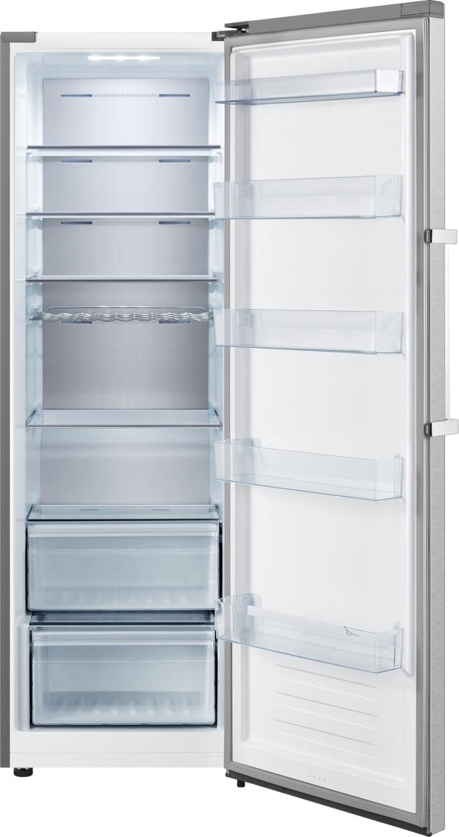 Der Hisense RL481N4BIE ist ein großzügiger, freistehender Vollraumkühlschrank (ohne Gefrierfach) in eleganter Edelstahl-Optik, der besonders durch sein Fassungsvermögen und moderne Kühltechnologien überzeugt.