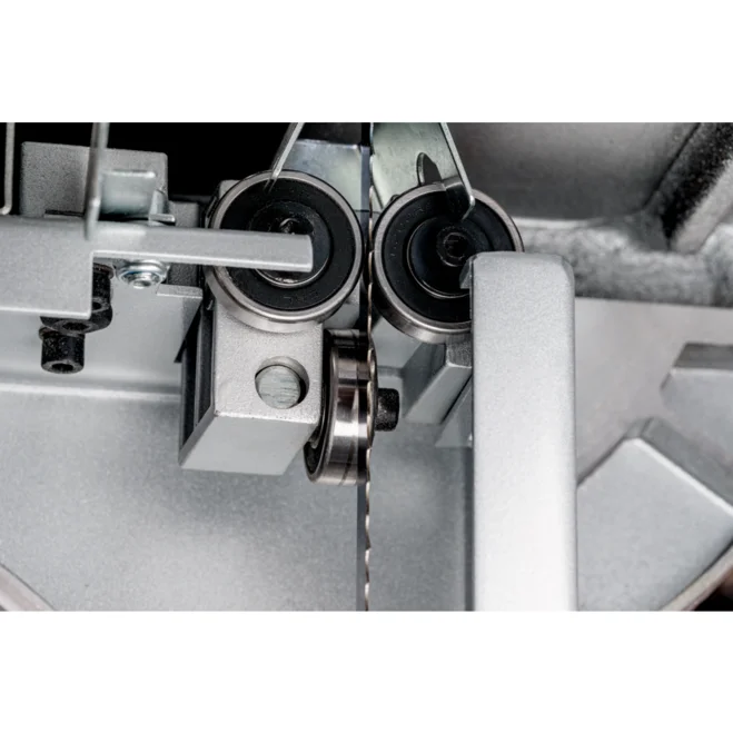 - Justierbare HSS-Präzisionsdreirollenführung des Sägeblattes oben und unten für exakte Schnittergebnisse