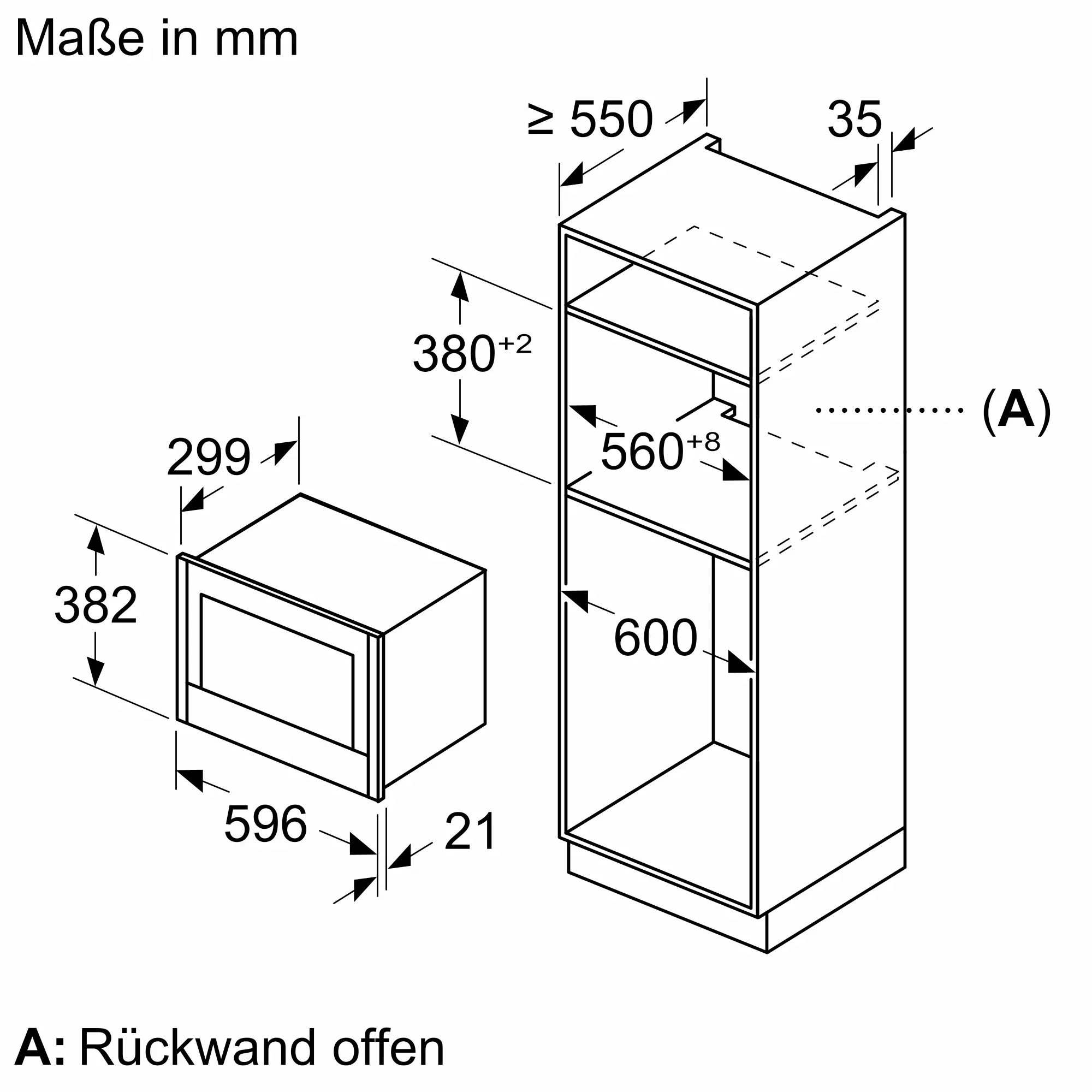 - Nischenmaße (HxBxT): 362 - 382 x 560 - 568 x 300 mm