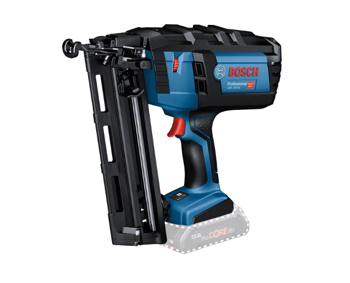Der Bosch Akku-Nagler GNH 18V-64 Professional ist die mobile Lösung für präzise Holzbefestigung ohne Kompressor oder Gaskartuschen. Einfach Akku einsetzen und loslegen. Dank Trockenschuss-Sperre schützt er das Werkstück bei leerem Nagelmagazin. Präzise Versenktiefe-Einstellung gewährleistet höchste Genauigkeit. Ideal für Fußleisten, Fenster- und Türrahmen sowie Treppenverkleidungen aus Weich- oder Hartholz sowie Verbundmaterialien. Kompatibel mit Bosch Professional 18V-Akkus und -Ladegeräten. Mit Einzelschussauslösung für 1,6 mm Stiftkopfnägel bis 64 mm Länge. Sein neues Design ermöglicht es, das Werkzeug bequem abzulegen.