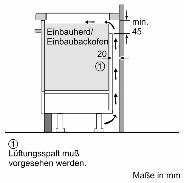 Min. Nischenmaße für Installation (H x B x T): ............51 x 750-780 x