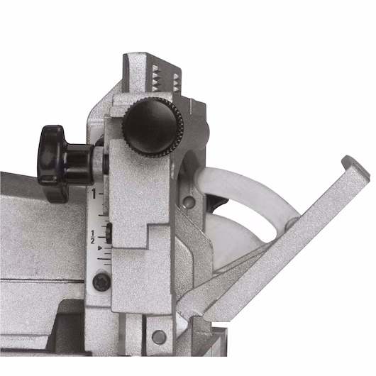 - Einstellbare Fixrasten für Lamellendübel der Größen 0, 10, 20 und maximale Frästiefe mit Feinjustierung für höchste Genauigkeit