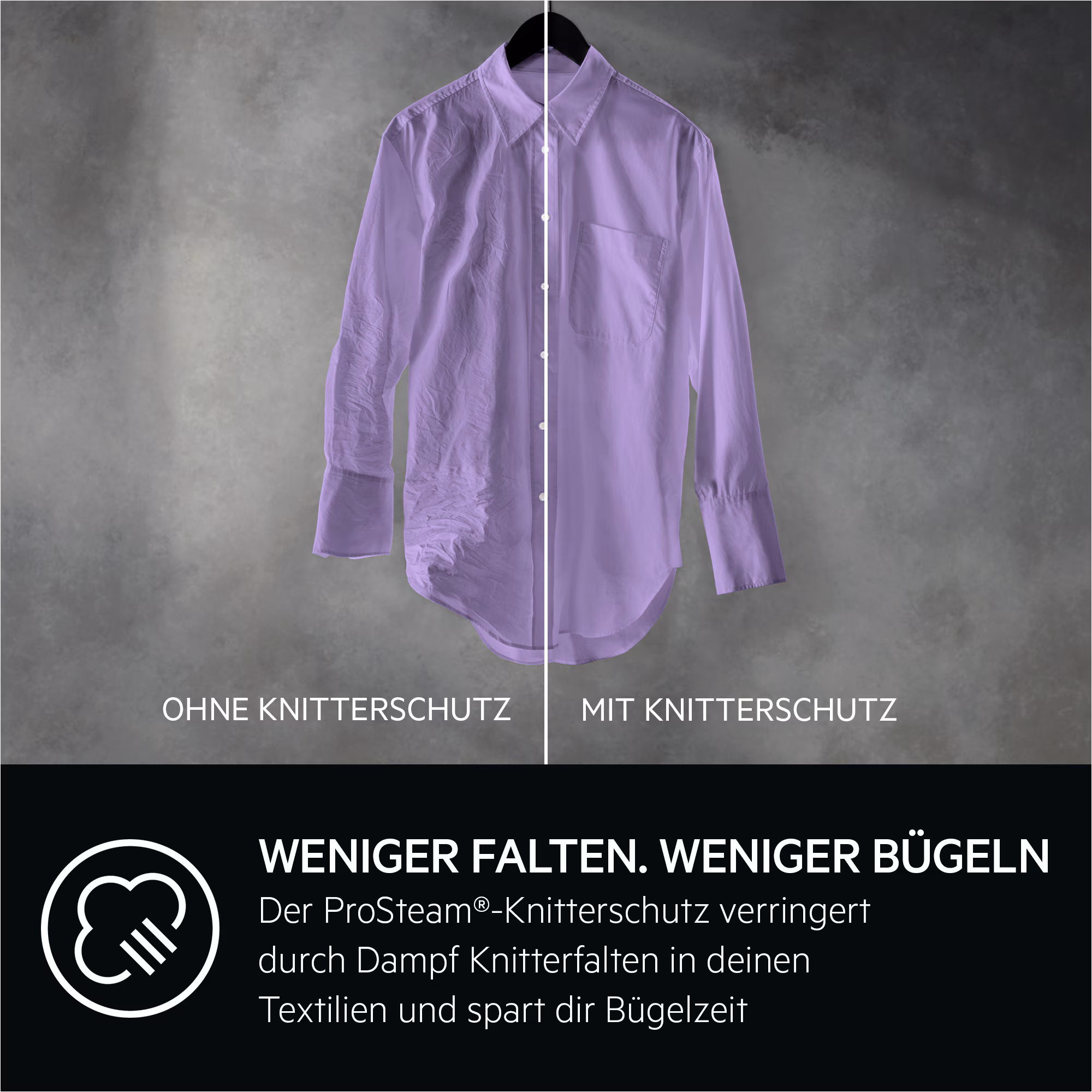 • ProSteam® Knitterschutz durch Dampf optional anwählbar