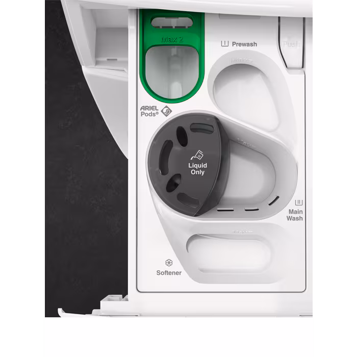 UniversalDose-Schublade: Löst PODS®/CAPS 60 % schneller auf* Die UniversalDose-Schublade löst durch die fortschrittliche Wasserwirbel-Technologie Waschmittel PODS® und Caps 60 % schneller auf im Vergleich zur Trommelbeigabe. Das steigert die Reinigungsleistung und Fleckentfernung bei Kurz- und Niedrigtemperatur