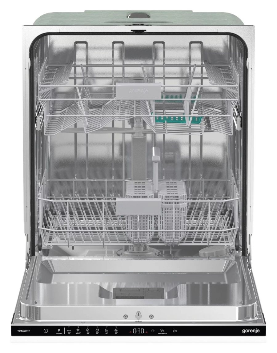 Der GV642C60 ist ein moderner Einbau-Geschirrspüler, der für eine Standardnische von 60 cm Breite konzipiert ist. Da er vollintegriert ist, verschwindet die Bedienblende im Inneren an der Oberseite der Tür, sodass das Gerät optisch komplett hinter deiner Küchenfront verschwindet.