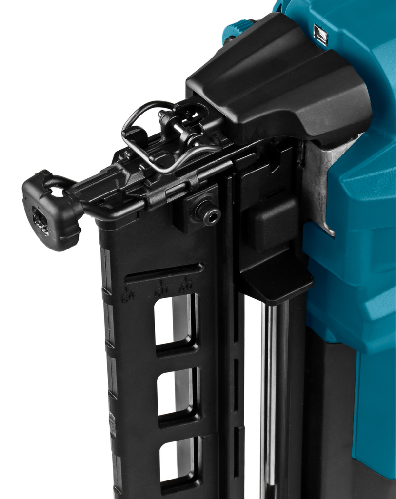 The Makita DBN600Z is a powerful cordless brad nailer with an 18V battery that features a built-in compressor for air-tool-like performance. This cordless tool is ideal for precise finishing and trim work, including panel and molding installation. It handles nails from 25 to 64 mm in length for quick and clean fastening.