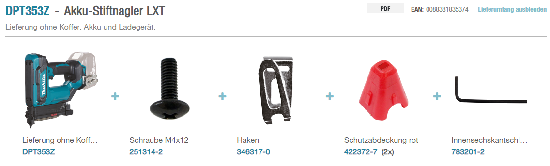 Product information "Makita DPT353Z Pin Nailer LXT"