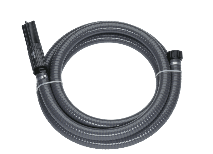 Komplett anschlussfertiger vakuumfester Spiralschlauch zum Direktanschluss an die Pumpe. Mit Saugfilter zum Schutz der Pumpe vor Beschädigung durch Verschmutzung und mit Rückflussstopp für eine verkürzte Wiederansaugzeit. Der Schlauch hat eine Länge von 7 m, einen Durchmesser von 25 mm (1") und ist geeignet für Pumpen mit 33,3 mm (G 1) Außengewinde.