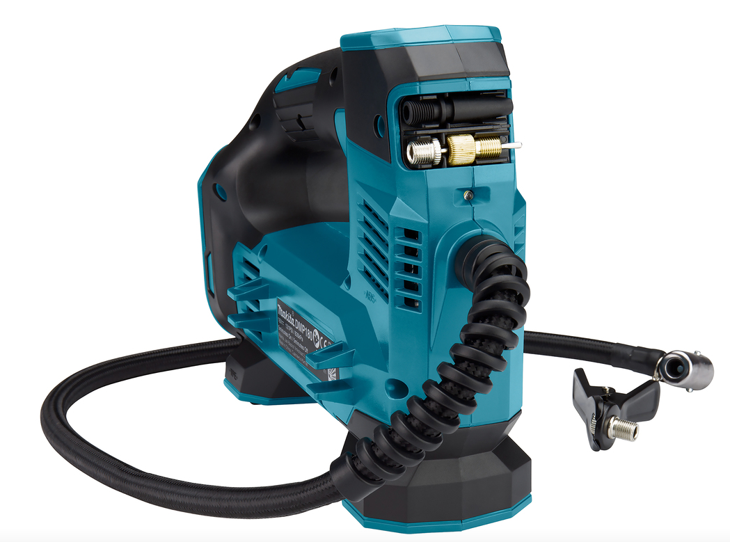 Entdecken Sie den Makita DMP180Z Akku-Kompressor, die perfekte Lösung zum Befüllen von Reifen und Bällen. Mit 18 V Leistung und einem maximalen Druck von 8,3 bar (121 psi) stoppt der Kompressor automatisch bei Erreichen des voreingestellten Drucks. Das integrierte LED-Licht erleichtert die Arbeit bei schwachem Licht, während der Thermostat das Gerät vor Überhitzung schützt. Er ist mit mehreren Ventilen ausgestattet und eignet sich für verschiedene Produkte.
