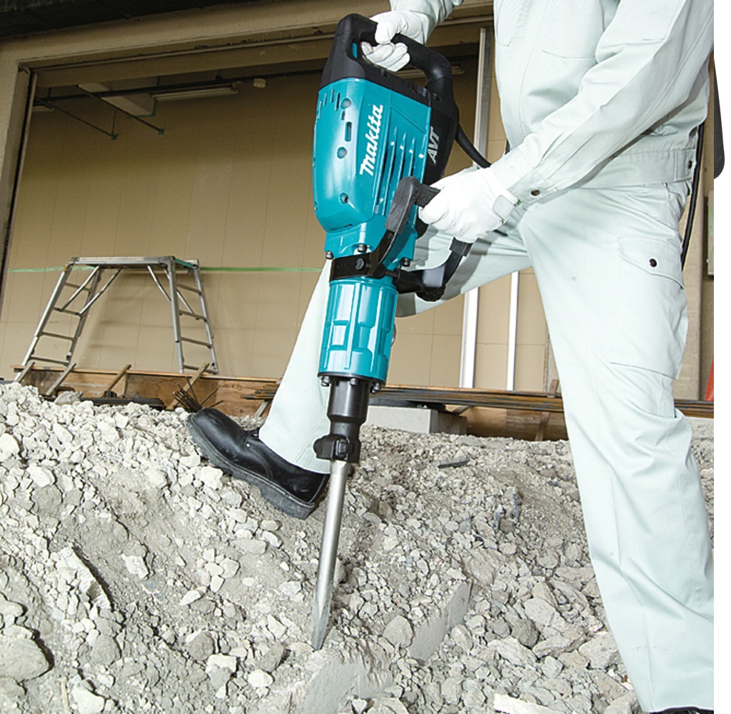 Der Makita HM1317C Stemmhammer ist ein leistungsstarkes Werkzeug für anspruchsvolle Stemmarbeiten. Mit einem 1.510 W Motor und einer Einzelschlagstärke von 25,0 J bei einer Schlagzahl von 730 - 1.450 min-1 bietet er beeindruckende Leistung. Dank des Antivibrationssystems (AVT) arbeitet der Stemmhammer vibrationsarm und ermöglicht ein komfortables Arbeiten. Er eignet sich ideal zum Abtragen von Asphalt, Fundamenten, Betonpfeilern und anderen harten Materialien. Der schnelle Meißelwechsel sorgt für effizientes Arbeiten. Der Makita HM1317C Stemmhammer ist die perfekte Wahl für professionelle Handwerker, die Wert auf Leistung, Komfort und Präzision legen.