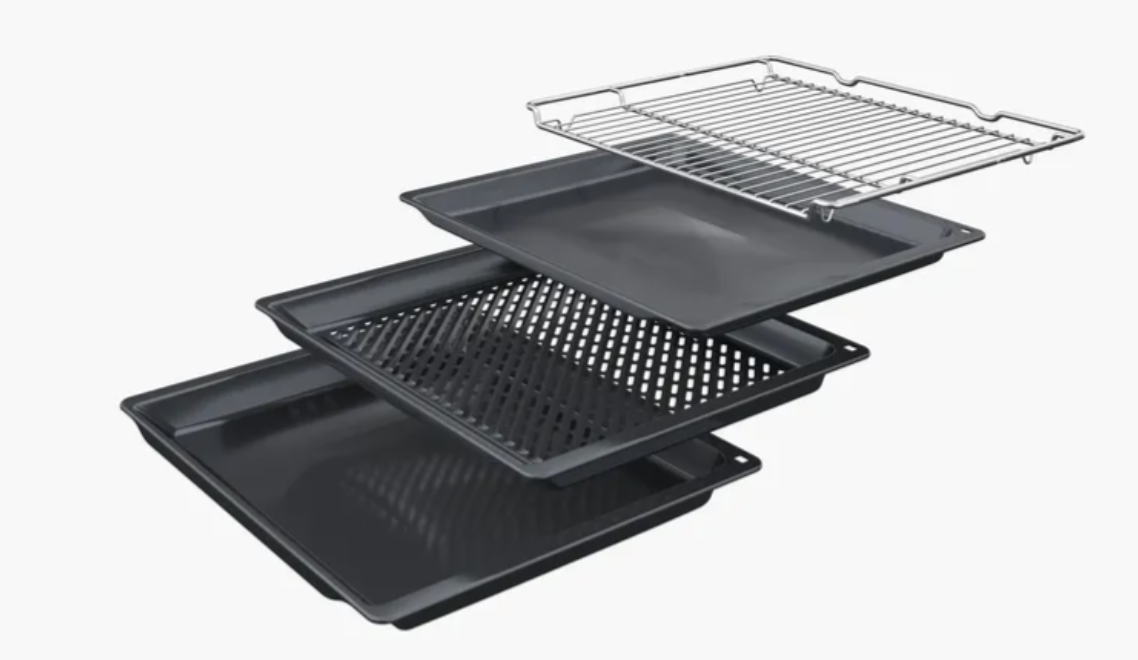 1 x Backblech emailliert, 1 x Kombirost, 1 x Universalpfanne, 1 x Air Fry & Grillblech