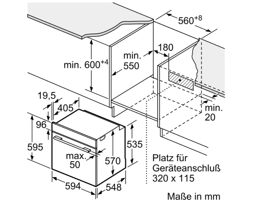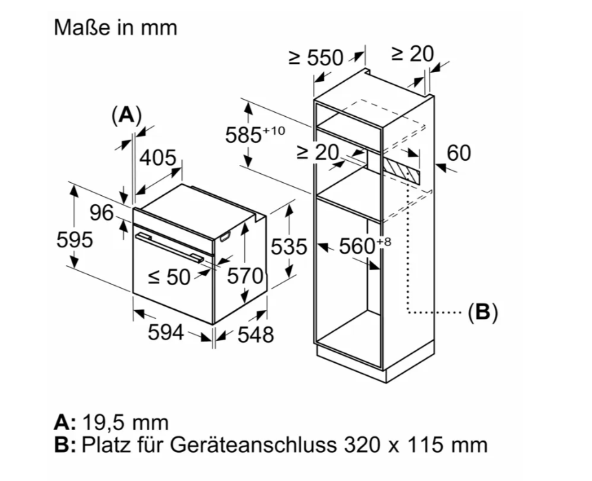 Siemens iQ300 Einbau-Backofen mit Dampfunterstützung 60 x 60 cm Edelstahl HR532GBS3 Produktmerkmale Abmess…