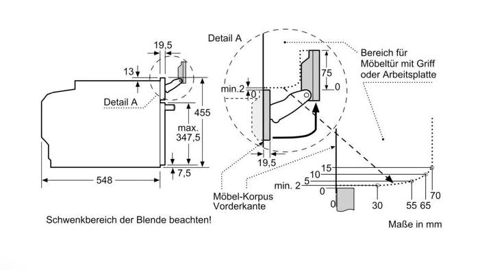- „Maße und Einbauhinweise zu diesem Gerät gemäß technischer Zeichnung beachten“