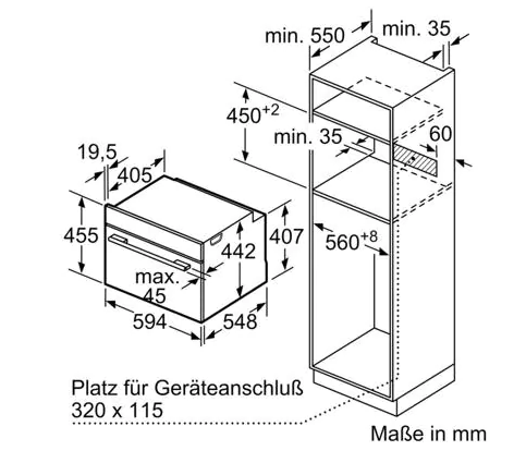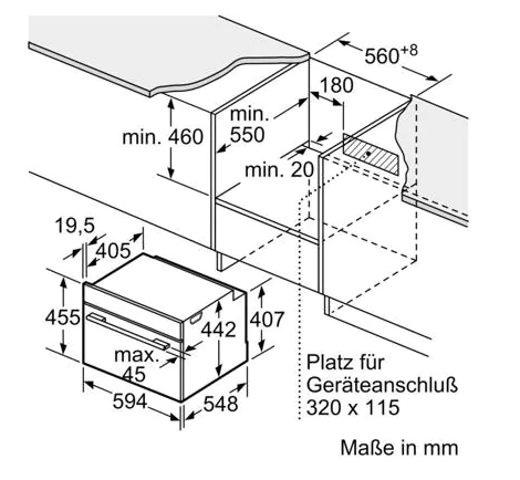 - Nischenmaße (HxBxT): 455 mm x 560 mm x 550 mm